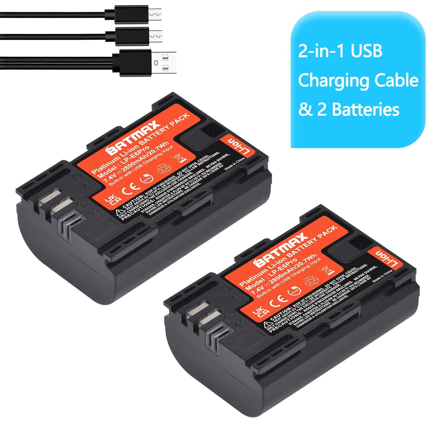 Acumulator profesional de mare putere Batmax LP-E6 Baterie 2800mAh cu USB Input pentru Camere Foto Canon EOS.