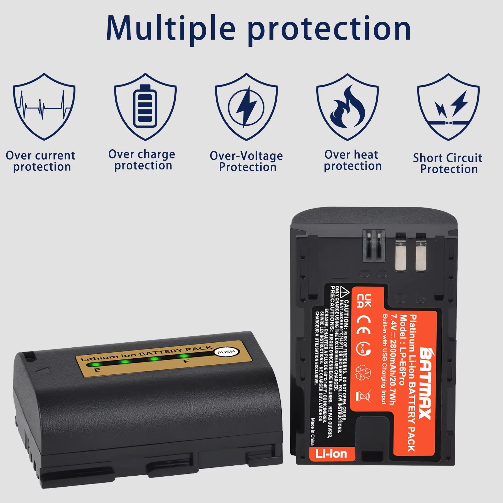 Acumulator profesional de mare putere Batmax LP-E6. Baterie 2800mAh cu USB Input pentru Camere Foto profesionale Canon EOS
