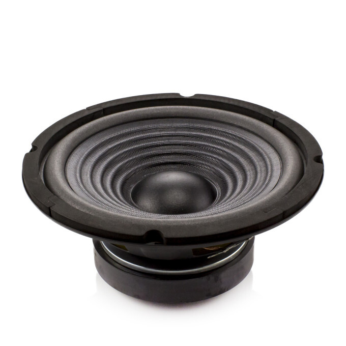 Membrana din hartie impregnata, care asigura rigiditate si in conditii climatice extreme, cu suspensie din cauciuc. Bobina mobila pe carcasa de aluminiu.
