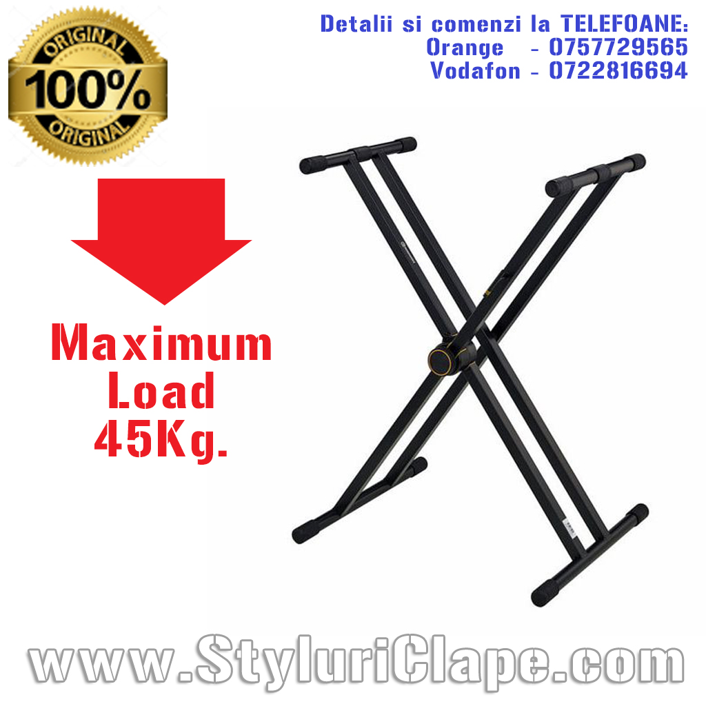 SUPORT PROFESIONAL PENTRU ORGI ELECTRONICE Un suport dublu-X cu o constructie foarte buna si robusta, ideal pentru clape, sintetizatoare și piane de scenă sau alte claviaturi.